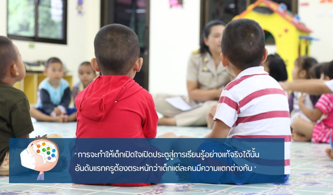การจะทำให้เด็กเปิดใจเปิดประตูสู่การเรียนรู้อย่างแท้จริงได้นั้น อันดับแรกครูต้องตระหนักว่าเด็กแต่ละคนมีความแตกต่างกัน