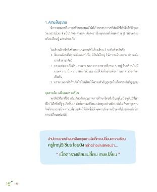 1. สิ่งแวดล้อมที่ปลอดภัยและร่มรื่น มีต้นไม้ใหญ่ ให้ควำมเย็นสบำย ปลอดภัย problem - based learning ร่วมกัน เมื่อครู