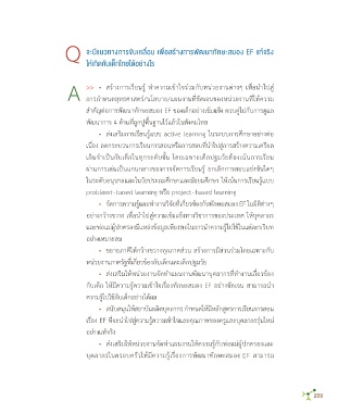 กำรอ่ำนหนังสือ : ให้นักเรียนหยิบเอำตัวละคร วิธีกำรใช้ค�ำศัพท์ หรือควำมสัมพันธ์ • จัดกำรควำมรู้และท�ำงำนวิจัยที่เกี่ยวข้องกับทักษะสมอง EF ในมิติต่ำงๆ