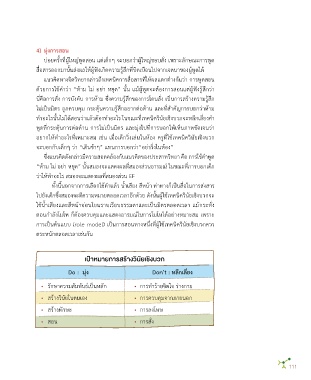 ที่เหมาะสม เช่น ฝึกให้เด็กรู้จักอารมณ์ บอกอารมณ์ตัวเองได้ และในที่สุดเกิดเป็นทักษะควบคุม ด้วยการใช้ค�าว่า “ห้าม ไม่ อย่า หยุด” นั้น แม้ผู้พูดจะต้องการสอนแต่ผู้ฟังรู้สึกว่า
