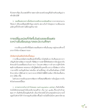 ไม่ให้เวลาเด็กปรับตัว” เพราะโรงเรียนท�าทุกอย่างแบบชั้นประถมศึกษา ช่วงนี้จึงเป็นช่วง อยู่แล้วในตัว ท�าให้ก�ากับควบคุมตัวเองได้มากขึ้นแม้ว่าจะไม่มีเงื่อนไขใดๆ แสดงว่ามีความ