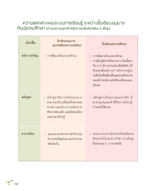 ประเด็น ชั้นเรียนอนุบาล ชั้นเรียนประถมศึกษา ระยะเวลาเรียน • ระยะเวลาเรียนขึ้นอยู่กับการท�า • ระยะเวลาเรียนขึ้นอยู่กับคาบเรียน